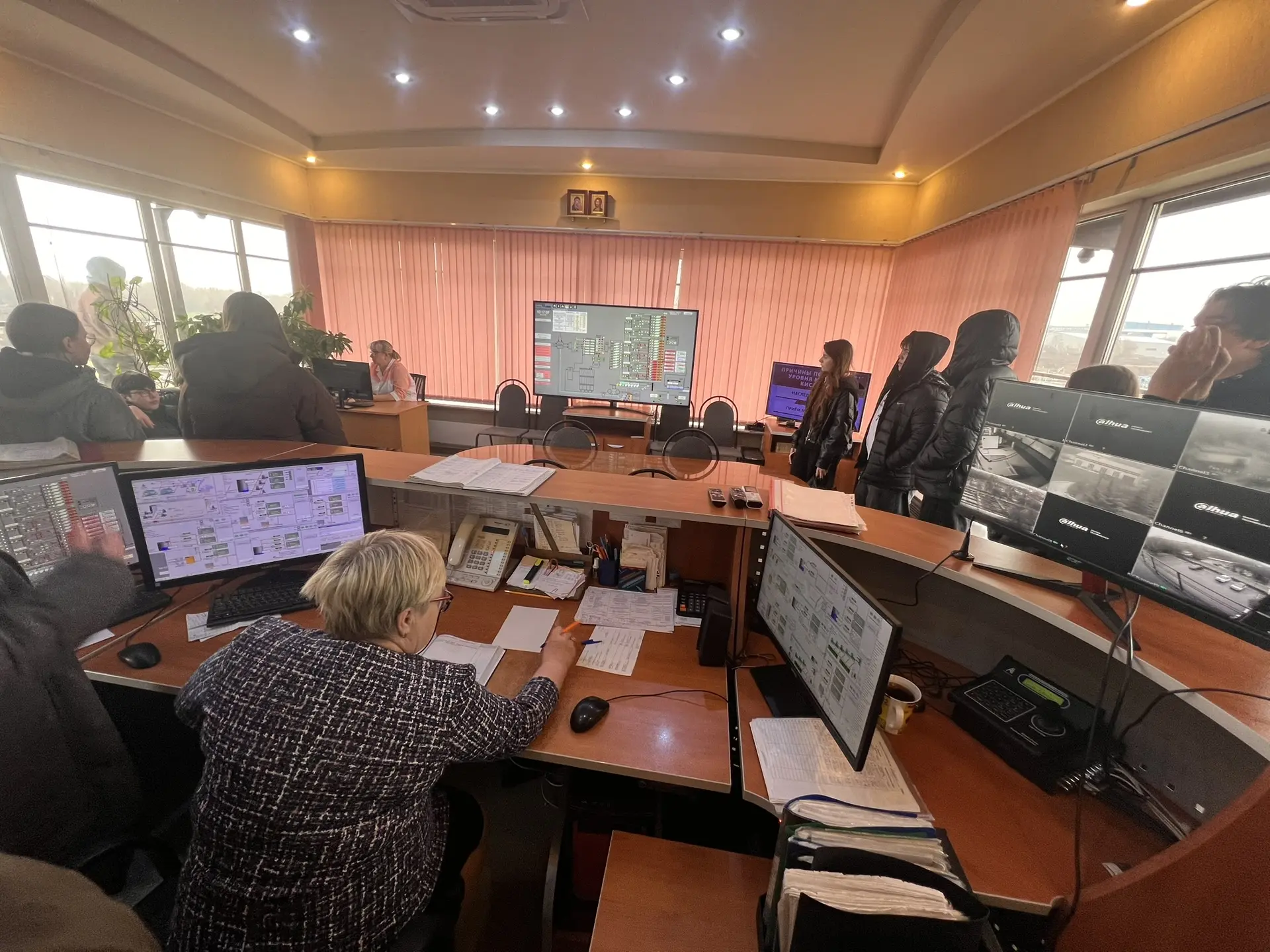 Знакомство началось со здания решёток, куда поступают неочищенные стоки. Далее ребята посетили центральную диспетчерскую, откуда осуществляется круглосуточное управление всеми технологическими процессами.